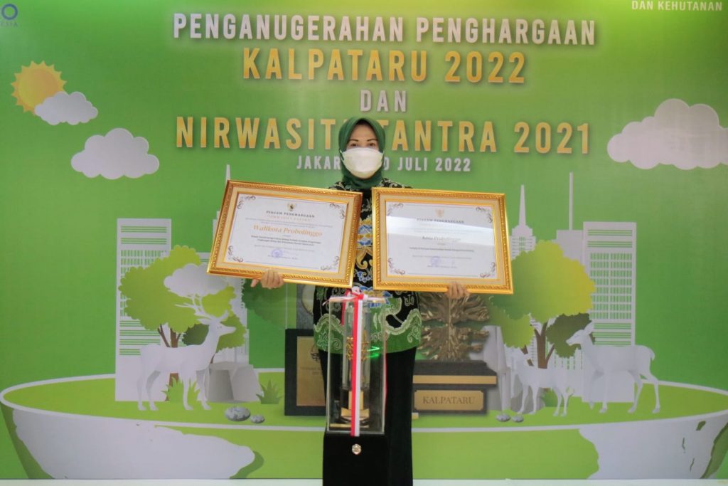 Penghargaan tersebut diberikan oleh Wakil Menteri Lingkungan Hidup dan Kehutanan (KLHK) Alue Dohong kepada Plh. Wali Kota Probolinggo drg. Ninik Ira Wibawati dalam acara Penganugerahan Penghargaan Kalpataru 2022 dan Nirwasita Tantra 2021, Rabu (20/7) pagi di Gedung Manggala Wanabakti, Kementerian Lingkungan Hidup dan Kehutanan (KLHK).