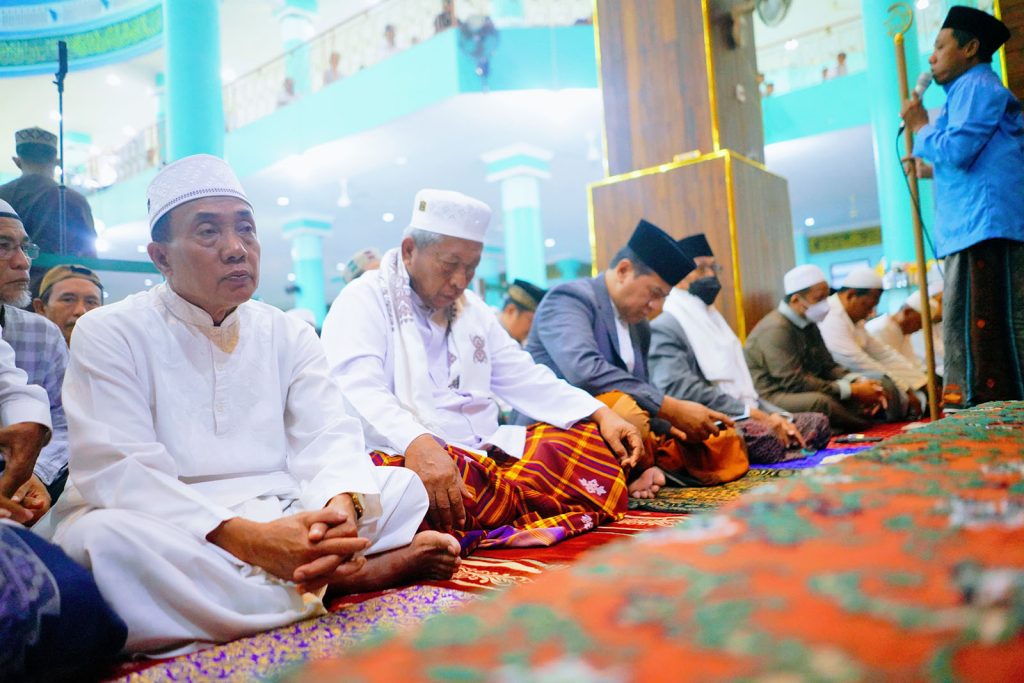 Mayangan – Ribuan jemaah salat Idul Adha memadati Masjid Agung Raudhatul Jannah, Senin (17/6). Penjabat Wali Kota Nurkholis beserta istri Dewi Maharani dan putranya, juga beribadah di Masjid yang berada di barat alun-alun kota itu. Dewi Maharani bersama Sekda Kota Ninik Ira Wibawati berkumpul dengan jemaah perempuan, yang posisinya berada di Jalan KH Agus Salim persis depan halaman Masjid Agung.