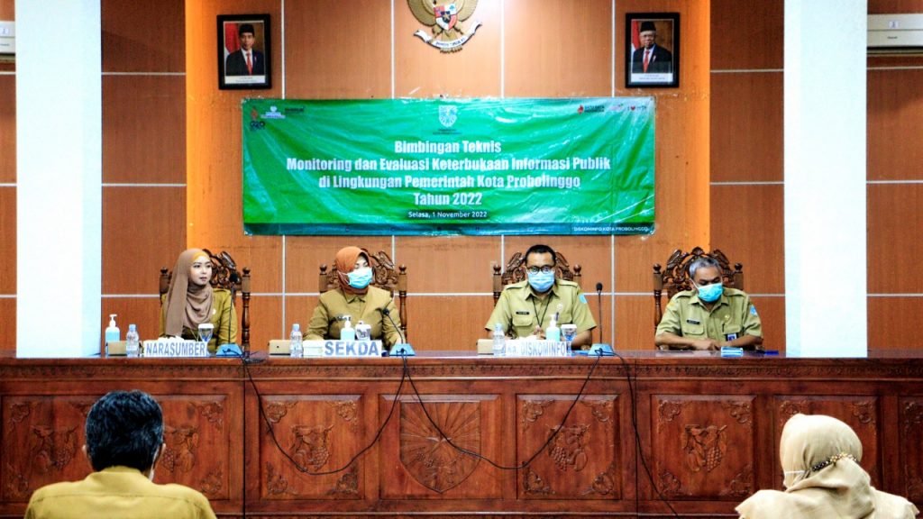 KANIGARAN – Dalam rangka pelaksanaan PPID Awards 2022 Kota Probolinggo, Diskominfo mengundang seluruh satuan kerja atau PPID Pembantu yaitu dari perangkat daerah, kecamatan, kelurahan, puskesmas, dan 10 SMP Negeri, dengan total 80 peserta. Tahapannya diawali Bimbingan Teknis Monitoring dan Evaluasi Keterbukaan Informasi Publik di Gedung Puri Manggala Bhakti, Kantor Wali Kota Probolinggo, Selasa (1/11).