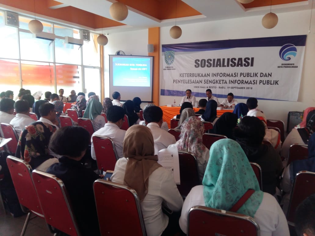 Probolinggo, 19/9/2018. Adanya Undang-Undang No. 14 Tahun 2008 tentang Keterbukaan Informasi Publik (KIP) merupakan momentum penting dalam mendorong keterbukaan informasi di Indonesia, khususnya di Jawa Timur. Hal tersebut disampaikan Aman Suryaman, Kepala Dinas Komunikasi dan Informatika Kota Probolinggo selaku Pejabat Pengelola Informasi Publik (PPID) Kota Problinggo dalam Sosialisasi Keterbukaan Informasi Publik dan Penyelesaian Sengketa Informasi Publik, pagi (19/8) tadi di Orin Hall dan Resto.