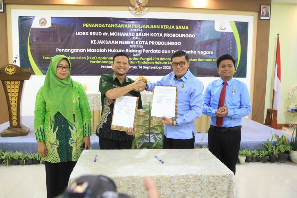 Turut hadir dalam kegiatan ini, Kepala Dinas Kesehatan P2KB dr. NH. Hidayati, Wakil Direktur UOBK RSUD dr. Mohamad Saleh Feby Hariyati, Kasi Datun Kejari Andi Haeruddin Malik, Kabag Hukum Denny Bagus Erwanto dan segenap jajaran staf RSUD dr. Mohamad Saleh dan Kejari Kota Probolinggo. (dy/qie)