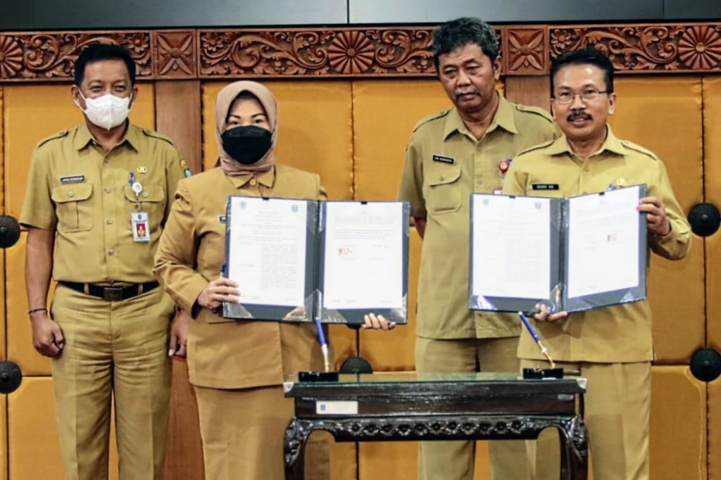 SURABAYA — Sekretaris Daerah Kota Probolinggo, drg. Ninik Ira Wibawati menandatangani perjanjian kerja sama (PKS) replikasi sistem informasi (SI) LPPD bersama dengan 24 kabupaten/kota di Provinsi Jatim, bertempat di ruang rapat Hayam Wuruk, Lantai 8 Kantor Gubernur Jawa Timur, Senin (7/11).
